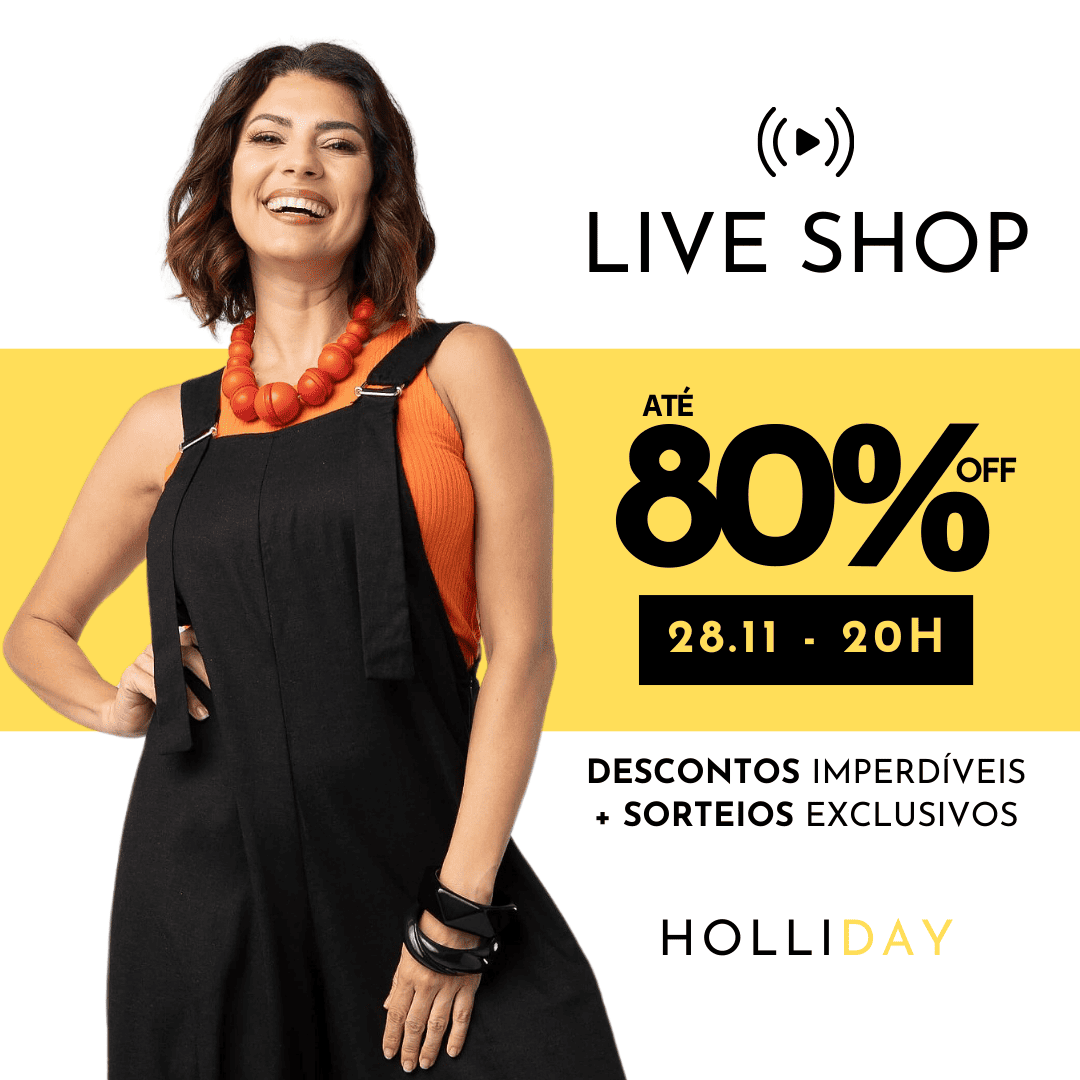 Junte-se a nós no dia 28/11 às 20h para uma Live Shop, com descontos de até 80%! Cadastre-se agora para garantir sua chance de participar dos nossos sorteios.